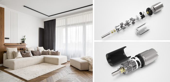 為適應智能電動窗簾電機日新月異的市場需求,深圳市兆威機電股份有限公司生產的智能電動窗簾減速齒輪箱產品規格有16MM\22MM\25MM\28MM\32MM\38MM。若在這些規格中沒找到您所需的智能電動窗簾電機齒輪箱,您還可以聯系我們的在線銷售工程師或技術人員。 以上電動窗簾智能化解決方案為特定客戶開發設計,只作為電動窗簾智能化解決方案展示。可以根據客戶的特殊需求做產品的設計、開發及生產,不單獨銷售。