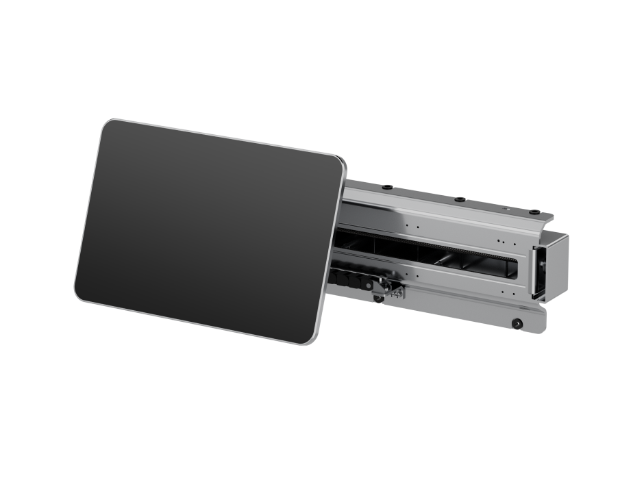 兆威汽車滑動屏驅動系統,通過高性能電機配合傳動機構,實現較大速比,快速降低馬達轉速,驅動屏幕在絲桿上水平滑動的同時,還能減小噪音。此外產品采用獨特固定結構,解決了屏幕平移的時候容易上下方向晃動的問題。