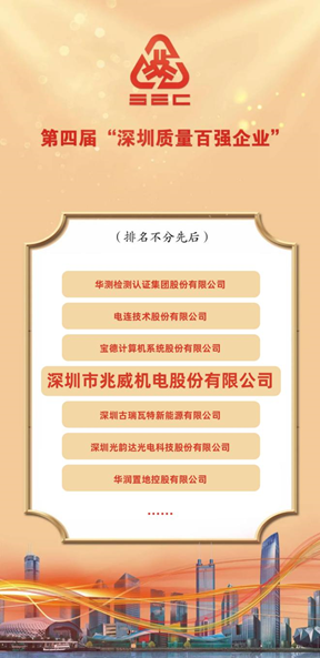 高質量勇毅前行,兆威機電上榜“深圳市質量百強企業”