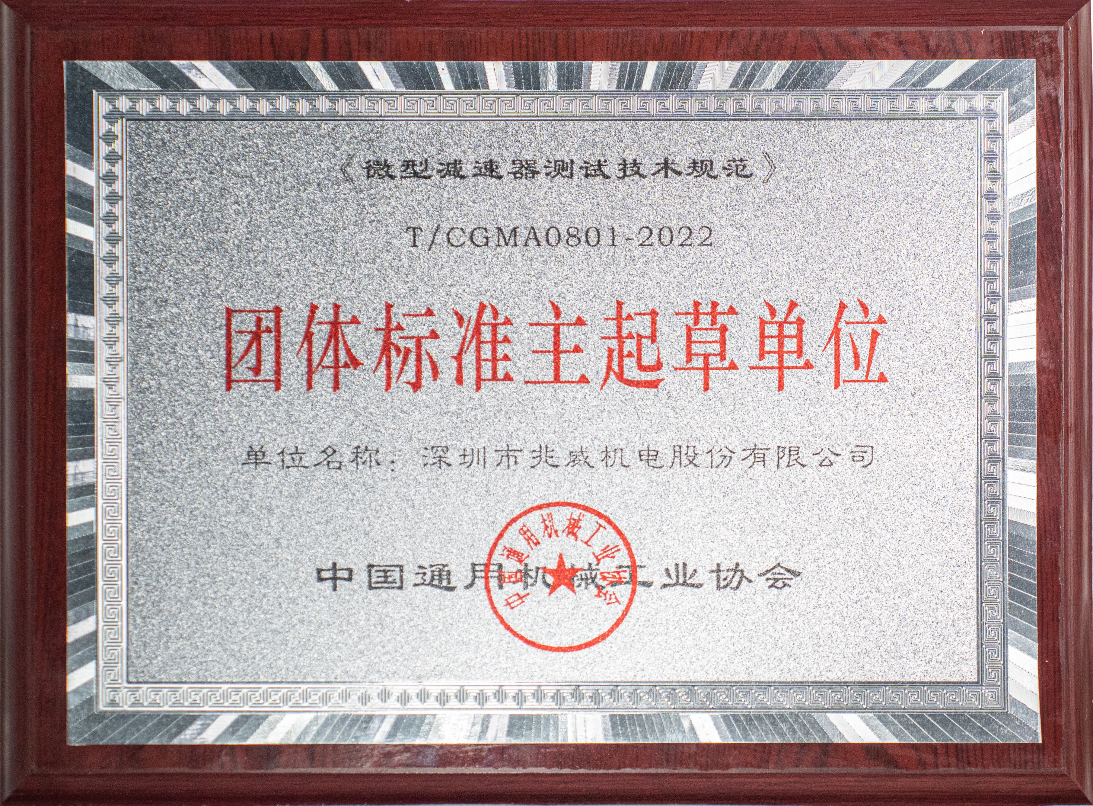 本次,兆威機電參加制定的標準為“微型減速器測試技術規范T/CGMA0801-2022”幫助推動行業技術進步,確保產品質量和安全性。而此“團體標準主起草單位”榮譽無疑是對公司長期以來在通用機械領域持續創新和卓越貢獻的高度認可。